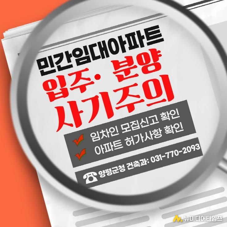 양평군은 최근 관내에서 장기일반 민간임대주택 투자와 관련한 문의가 증가함에 따라 군민들의 주의를 당부했다.