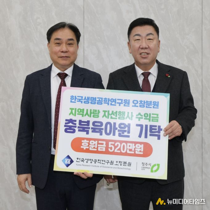 한국생명공학연구원 오창분원은 30일 청주지역 아동양육시설 보호아동을 위해 사용해 달라며 청주시에 자선행사 수익금 520만원을 기탁했다.