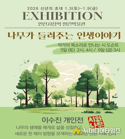 인천광역시 시립박물관은 1월 3일부터 9일까지 인천지하철 1호선 인천시청역 내 ‘열린박물관’에서 대관전시 ‘나무가 들려주는 인생 이야기’개인작가 전시를 개최한다고 밝혔다.