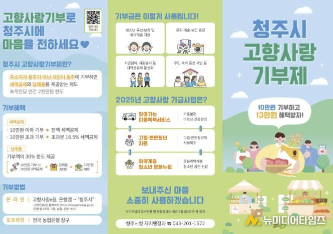이번 성과는 2024년 모금액 4억 8천407만원 대비 3천901만원(8.1%) 증가한 금액으로, 2023년 3억 192만원, 2024년 4억 8천407만원에 이어 3년 연속 증가세를 이어가고 있다. 이로써 청주시 고향사랑기부제는 시행 3년 만에 누적 기부금 13억원을 넘어섰다.