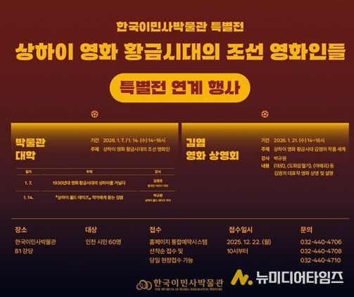 인천광역시시립박물관 분관 한국이민사박물관은 특별전 〈상하이 영화 황금시대의 조선 영화인들〉과 연계해 『중국인 이야기』의 저자 김명호 작가를 초청한 특강을 개최한다고 밝혔다.