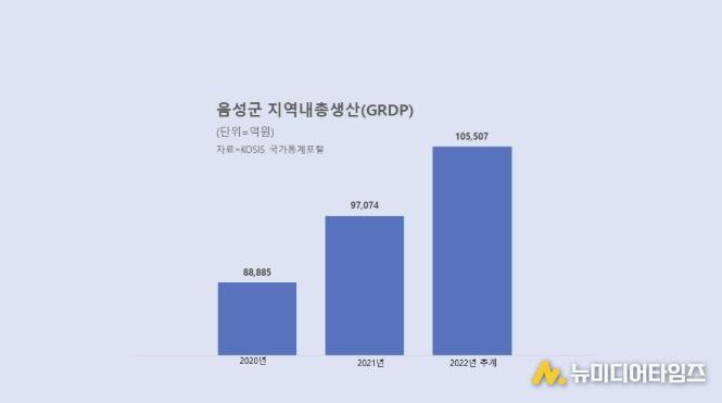 군에 따르면 약 3000개의 기업이 거둔 경영 실적이 지역의 가파른 성장으로 이어지며, 2022년 기준 지역내총생산 10조 5507억원을 기록했다. 이는 충북도 내 12.4%를 차지하는 비중으로 9년 연속 도내 2위 자리를 지켰고, 특히 전국 82개 군 단위 기초지자체 중에서는 울주군에 이어 전국 2위의 성적을 거뒀다.