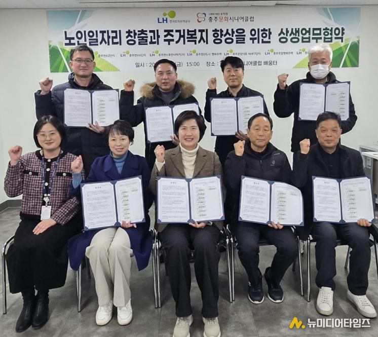 충주문화시니어클럽은 주택관리공단이 관리하는 LH임대아파트 7개 단지와 함께 12일 지역사회 발전과 노인복지 증진을 위한 업무협약(MOU)을 체결했다.