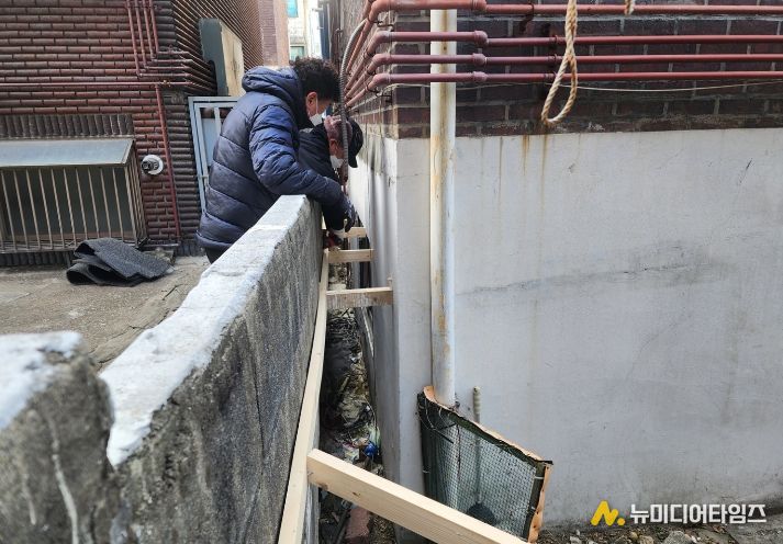 집수리 봉사활동에는 전국인테리어목수 사회적협동조합 소속의 전문 기술을 보유한 봉사단체가 참여해 노후 담벼락의 상태를 점검하고, 임시로 구조 보강을 위한 버팀목을 설치해 안전성을 높였다.
