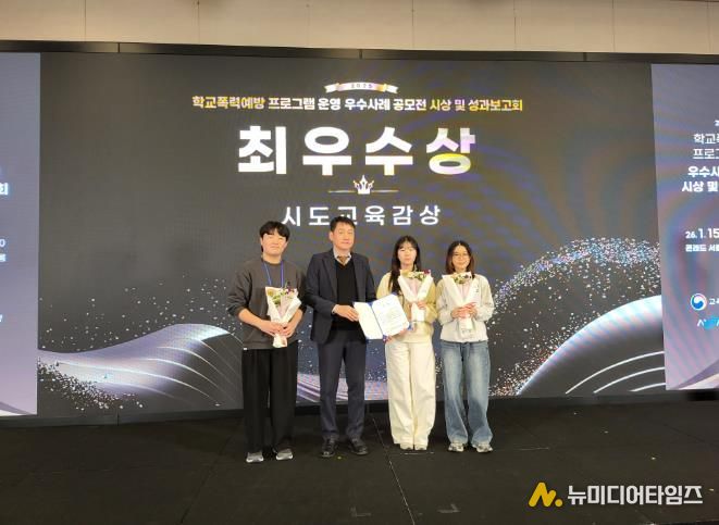 충청북도교육청은 15일, 콘래드 서울 호텔에서 열린 한국청소년정책연구원 주관 '2025년 학교폭력 예방 프로그램 운영 우수사례 공모전' 시상식에서 학교 · 교사 · 학생이 출품한 7편이 모두 입상했다고 밝혔다.