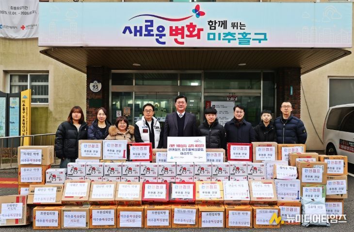 이번 전달식에는 런앤점프, 미추홀복싱클럽, 아리푸드 등 지역 사회 후원처가 참여해 라면 100상자와 김치 40상자를 전달했다.