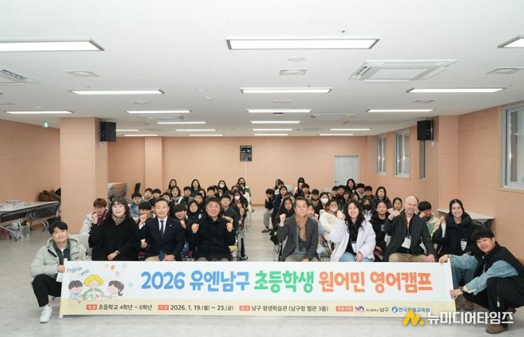 부산 남구는 지난 1월 19일부터 23일까지 5일간 남구청 별관 평생학습관에서 '2026년 유엔남구 초등학생 원어민 영어캠프'를 운영한다고 밝혔다.
