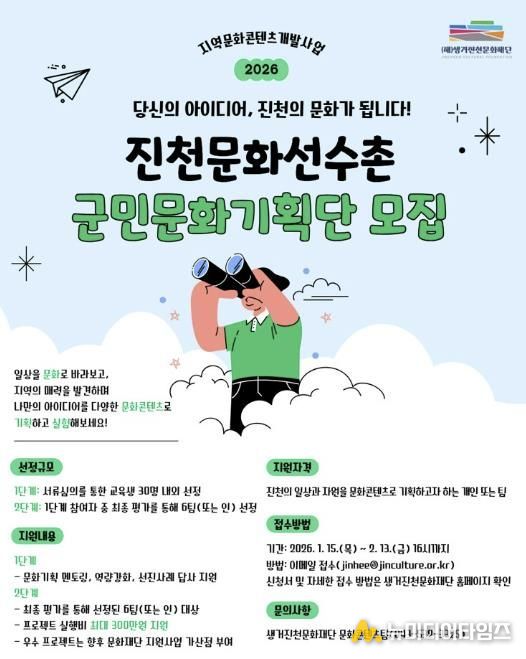 군민문화기획단은 2월 13일까지 모집하며, 지역에 대한 관심과 아이디어를 가진 군민이라면 누구나 참여할 수 있다.