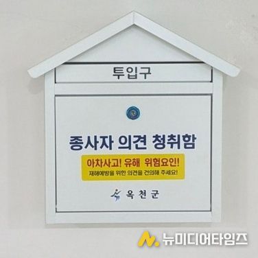 옥천군은 종사자의 안전·보건을 보다 체계적으로 관리하고, 현장의 다양한 목소리를 폭넓게 수렴해 군정에 적극 반영하기 위해 군청 및 읍·면사무소 등 주요 공공시설 16개소에 총 21개의 종사자 의견청취함을 설치·운영한다고 밝혔다.