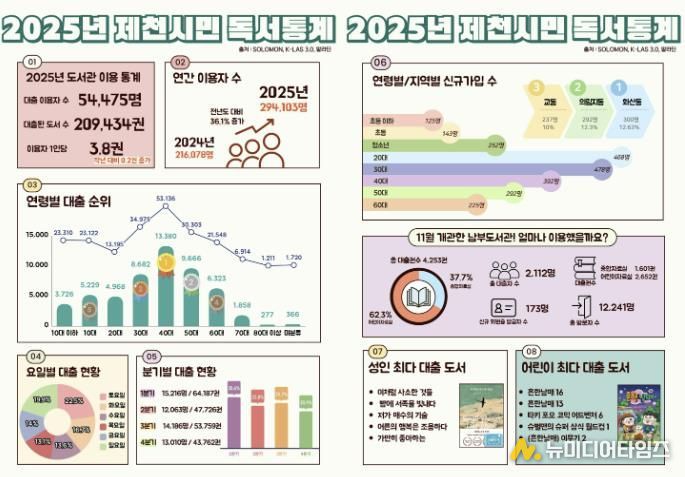 제천시립도서관이 발표한 ‘2025년 제천시민 독서통계’에 따르면, 지난해 도서관 이용자 수가 전년 대비 36.1% 크게 늘어난 것으로 나타났다.