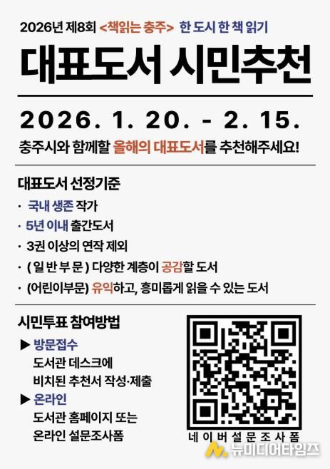 충주시립도서관이 시민 주도의 독서 문화 확산을 위해 2026년 제8회 '책읽는 충주' 독서 운동에 참여할 올해의 대표 도서를 공모한다.