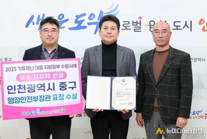 인천시 중구는 행정안전부가 주관한 ‘2025년 기후 재난 대응 우수 지자체’에 선정돼 행안부 장관 표창의 영예를 안게 됐다고 21일 밝혔다.