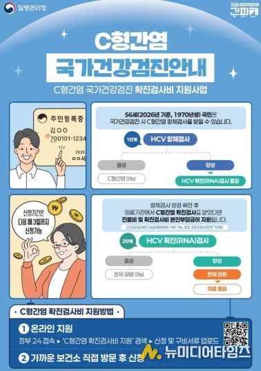 지난해 시작한 ‘C형간염 확진검사비 지원사업’은 기존 병·의원급 의료기관의 검사 대상자로 한정됐으나, 올해부터는 종합병원과 상급종합병원에서 확진 검사를 받은 대상자까지 확대된다.