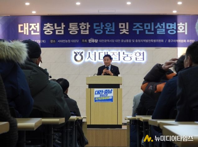 더불어민주당 대전·충남통합 및 충청지역발전특별위원회 대전 중구 추진단이 대전·충남통합을 주제로 22일 주민설명회를 개최했다.