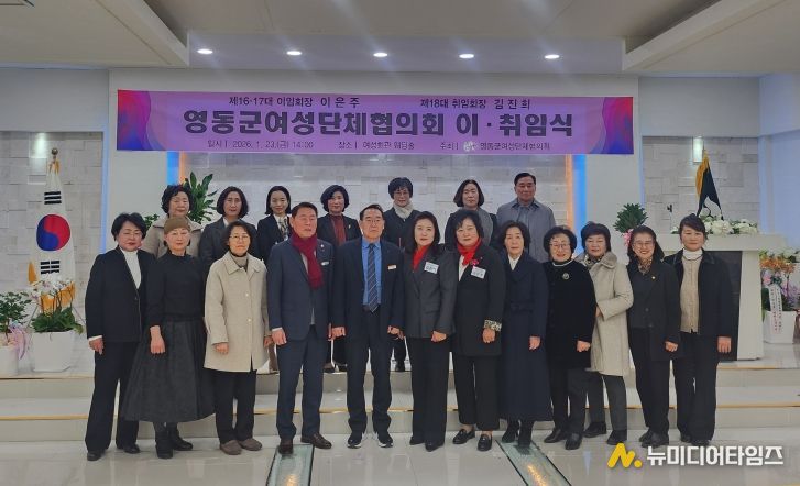 영동군 여성단체협의회는 지난 23일 오후 2시 여성회관 웨딩홀에서 여성단체협의회 역대 회장 및 회원 등 100여 명이 참석한 가운데 제16~17대 이은주 회장과 제18대 김진희 회장의 이·취임식을 개최했다.