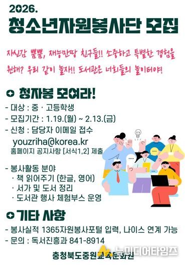 충청북도교육청 직속기관 중원교육문화원은 2월 13일까지 2026년도 '어울림자원봉사단'을 모집한다.