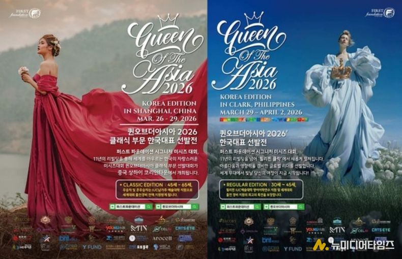 한국에서 서류심사 및 예심을 거쳐 연령대별로 2원화하여 진행하는 퀸오브더아시아는 올해 12회차로 작년 베트남 다낭에서 본선을 치른데 이어 올해에는 45세 이하 레귤러부문은 필리핀 클락에서 45세 이상 클래식 부문은 중국 상하이에서 본선을 각각 치르는 방식이다.