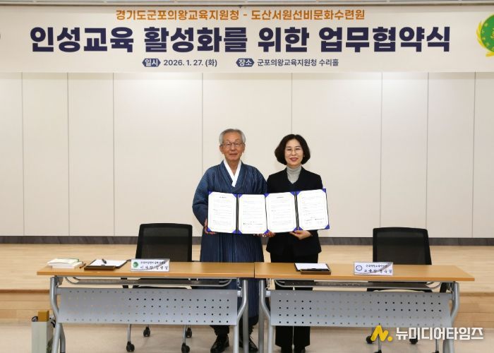 경기도군포의왕교육지원청은 1월 27일, 도산서원선비문화수련원과 학생들의 바른 인성 함양과 사회정서 역량 강화를 위한 업무협약(MOU)을 체결했다.