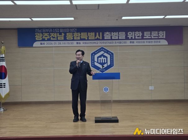 더불어민주당 주철현 국회의원(전남 여수시갑)은 28일, 국립순천대학교에서 ‘전남광주특별시’ 출범 과정에서 전남 동부권 산업의 역할과 경쟁력 강화를 논의하기 위한 '광주전남 통합특별시 출범 토론회'를 개최했다.