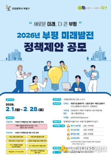 부평구는 2026년도 ‘부평 미래발전 정책 제안 공모’를 2월 한 달간 실시한다.