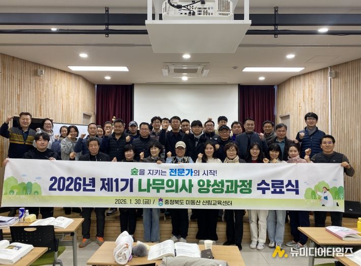충청북도산림환경연구소는 지난 1월 5일부터 30일까지 미동산산림교육센터에서 운영한 ‘2026년 제1기 나무의사 양성과정’을 마치고, 교육과정을 이수한 교육생 32명을 배출했다.