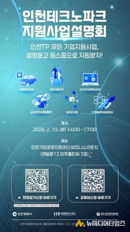 인천테크노파크(인천TP)는 오는 2월 10일 송도 미추홀타워에서 인천 지역 중소기업을 대상으로 ‘2026 인천테크노파크 지원사업 설명회’를 개최한다고 밝혔다.