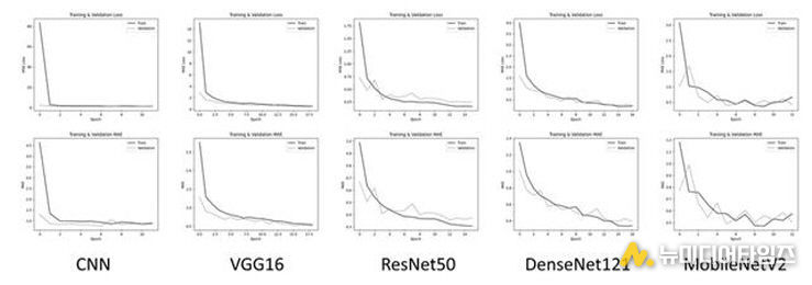 이를 위해 이미지 학습에 널리 활용되는 합성곱신경망(CNN) 기본 모델과 함께, VGG16, ResNet50, DenseNet121, MobileNetV2 등 CNN 기반 전이학습 모델을 적용해 예측 성능을 비교·분석했다.