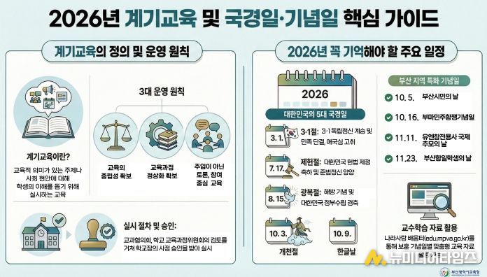 이번 홍보 강화는 시기별로 교육적 의미가 있는 주제를 다루는 ‘계기교육’의 현장 활용도를 높여, 학생들이 부산의 주요 기념일을 이해하고 그 역사적 의미를 자연스럽게 인식할 수 있도록 하기 위한 것이다.