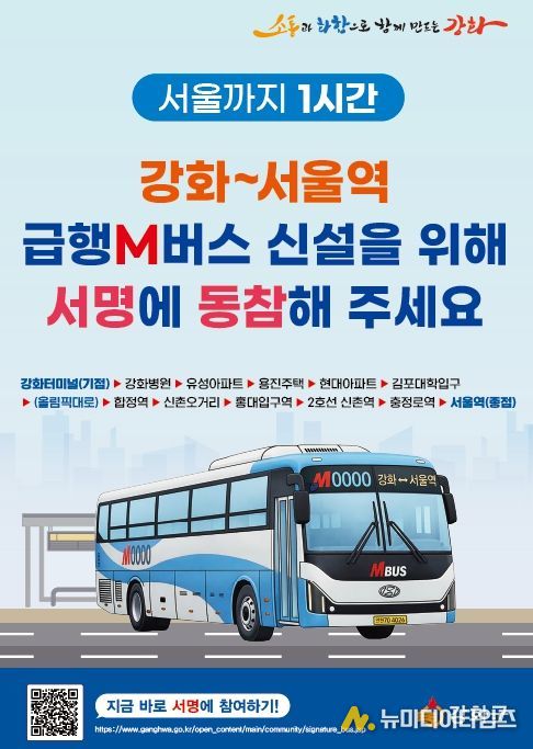 강화군은 ‘강화~서울역 M버스(광역급행버스)’ 노선 신설 유치를 위해 대규모 범군민 서명운동을 전개하며, 대대적인 행정력 집중에 나선다.