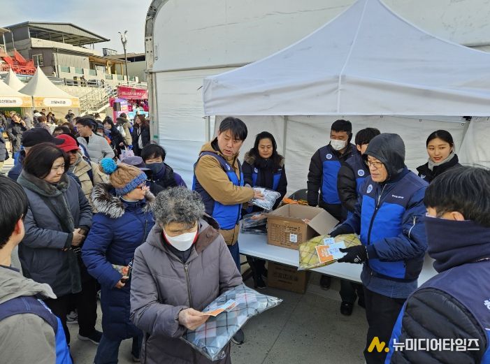 영동양수건설소 임정묵 소장과 직원들은 축제장을 방문한 군민과 관람객에게 홍보 기념품(핫팩 2,000개, 무릎담요 500개)을 배부하며 영동곶감의 우수성을 알렸다.