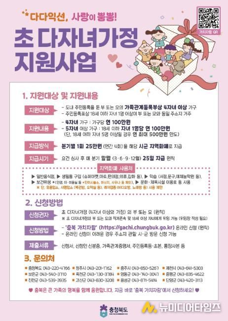 신청은 ‘충청북도 가치자람’ 플랫폼을 통해 상시 가능하며, 온라인 신청이 어려운 경우 주소지 관할 행정복지센터를 방문해 신청할 수 있다.