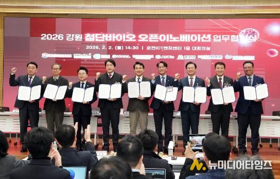 홍천군은 2월 2일, 강원특별자치도, 춘천시와 함께 춘천 ICT벤처 센터에서 「강원 첨단 바이오 오픈 이노베이션 프로그램」 업무협약식과 사업설명회를 개최하고, 올해부터 사업을 본격 확대 추진한다고 밝혔다.