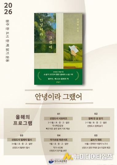 강원특별자치도교육청원주교육문화관(관장 용석태)은 시민 독서 문화 확산과 책 읽는 공동체 조성을 위해 2026년 ‘원주 한 도시 한 책 읽기 운동’ 사업의 일환으로 연중 다양한 독서 참여 프로그램을 운영한다.