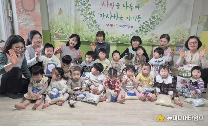 이번 나눔은 설 명절을 앞두고 행복한어린이집 원아와 학부모, 교직원들이 이웃을 사랑하는 마음을 모아 마련됐으며, 쌀 43㎏을 전달하며 지역사회에 훈훈한 온기를 더했다.