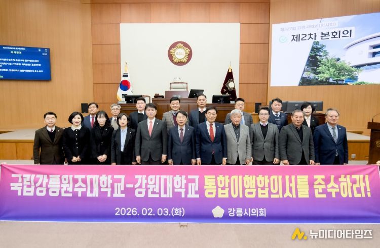 강릉시의회는 3일 제327회 강릉시의회(임시회) 제2차 본회의에서 조대영 의원의 대표발의로 ‘국립강릉원주대학교-강원대학교 통합이행합의서 준수 촉구 성명서’를 발의했다.
