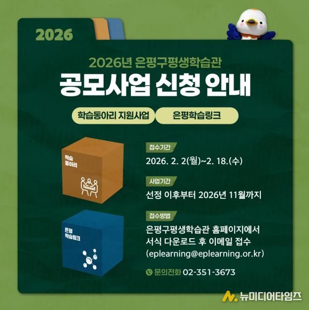 공모사업 선정은 사업의 이해도와 타당성, 운영 적합성 및 기대효과 등을 종합적으로 심사해 결정된다. 최종 심사 결과는 다음달 4일 은평구평생학습관 누리집을 통해 발표된다.