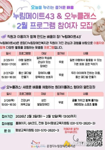 파주시 운정다누림장애인복지관은 참여형 평생학습 프로그램 ‘누림메이트43’을 운영하며, 정규 강좌로는 담기 어려운 소규모 학습 수요를 반영한 생활 밀착형 배움을 실천하고 있다.