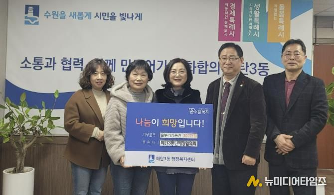 수원시 영통구 매탄3동은 지난 3일 매탄3동 단체장협의회가 다가오는 설 명절을 맞아 관내 어려운 이웃들을 위해 누리상품권 300장(총 300만원 상당)을 기부했다고 밝혔다.