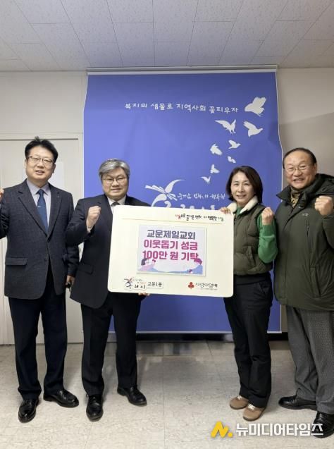구리시 교문1동 행정복지센터는 설 명절을 맞아 지난 2월 3일, 교문제일교회로부터 이웃돕기 성금 100만 원을 기탁받았다.