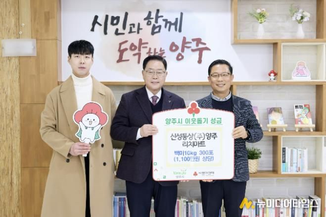양주시는 지난 3일 관내 신성통상㈜ 리치마트가 설 명절을 맞아 양주시에 백미 300포(약 1,100만 원 상당)를 기부했다고 밝혔다.