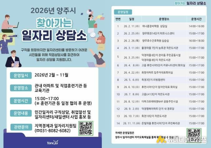 양주시가 구직 현장의 문턱을 낮추고 시민들의 취업 성공률을 높이기 위해 오는 11월까지 ‘2026년 찾아가는 일자리 상담소' 를 운영한다.