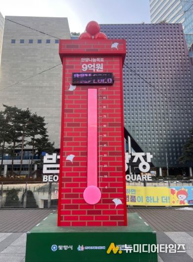 안양시는 범계역 광장에 설치된 ‘사랑의 온도탑’이 올해도 100도를 넘겼다고 4일 밝혔다. 지난해 12월 1일부터 올해 1월 31일까지 진행된 모금 결과, 시민과 기업의 참여로 온도는 최종 101도를 기록했다.