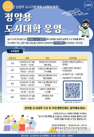 아울러 시 도시정책과는 ‘찾아가는 정약용 도시대학’ 강연 내용과 일정을 각종 회의와 온라인을 통해 홍보해 시민 참여를 적극 유도하고 있다.