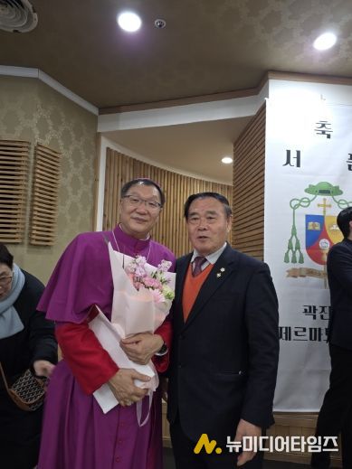 이재식 의장은 축하 인사를 통해 “곽진상 제르마노 주교님의 서품을 진심으로 축하드린다”며 “사목표어인 ‘그리스도 안에서 변화’를 통해 신앙 공동체는 물론 지역사회에도 깊은 울림과 희망을 전해주시길 기대한다”고 말했다. 이어 “수원특례시의회도 지역사회와 함께하는 종교·시민 공동체의 가치가 더욱 확산될 수 있도록 응원하겠다”고 밝혔다.