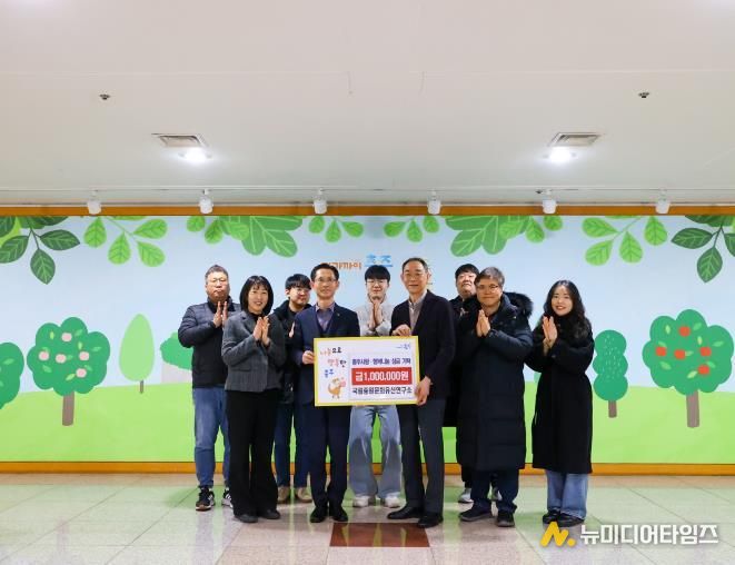 국립중원문화유산연구소가 12일 충주시청을 방문해 지역의 어려운 이웃들을 위해 100만 원의 성금을 기탁했다.