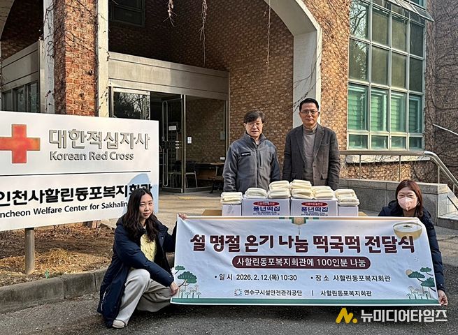 연수구시설안전관리공단은 2월 12일 오전 인천 연수구 사할린동포복지회관을 찾아 설 명절을 앞둔 어르신들을 위해 떡국떡 100인분을 기증했다.