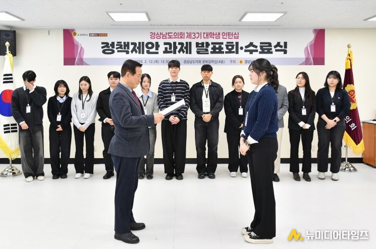한편, 경남도의회는 도내 대학과의 긴밀한 협력을 바탕으로 지역 인재들이 미래를 설계할 수 있도록 지원하기 위해 대학생 인턴십 사업을 지속해 나갈 방침이다.