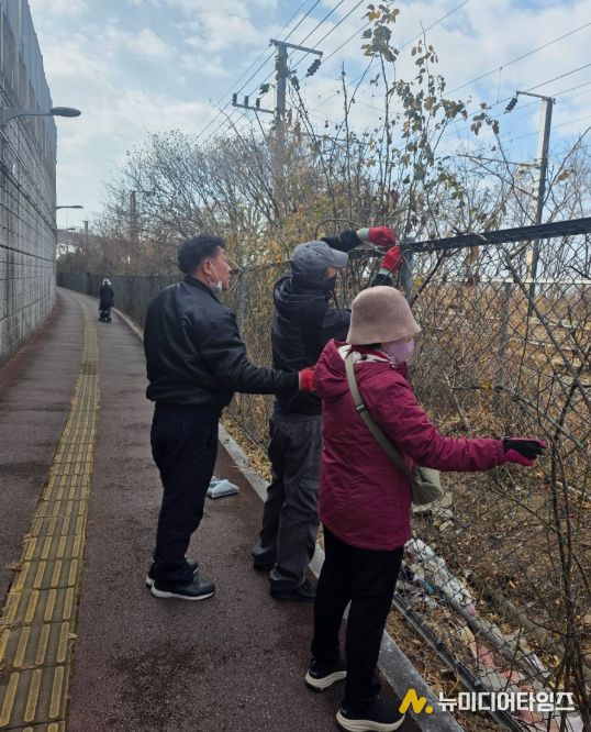 이날 위원회 회원들은 추운 날씨에도 불구하고, 장미꽃길 800m 구간의 무성한 넝쿨과 잡초를 제거하며 구슬땀을 흘렸다. 아울러 장미가 건강하게 자랄 수 있도록 줄기 결속 작업도 함께 진행했다.