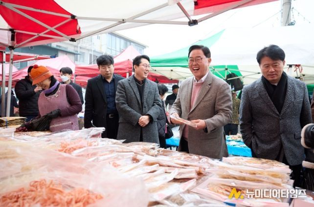 전통시장에서는 명절 장보기로 분주한 상인과 시민들을 만나 지역경제 상황을 점검하고 애로사항을 청취했다.