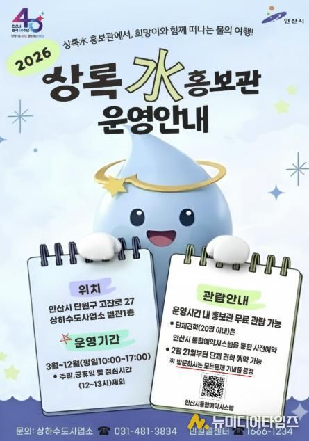 안산시는 오는 3월 3일부터 시의 수돗물 상록수(水) 홍보관 운영 재개에 나선다고 19일 밝혔다.